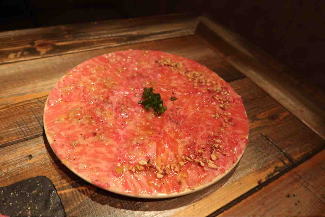 普通のユッケは分厚くて千切り?にされてるイメージですがこちらのユッケは薄切りになっていて、早く食べないと室温でべちゃべちゃになっちゃうくらい薄いです。