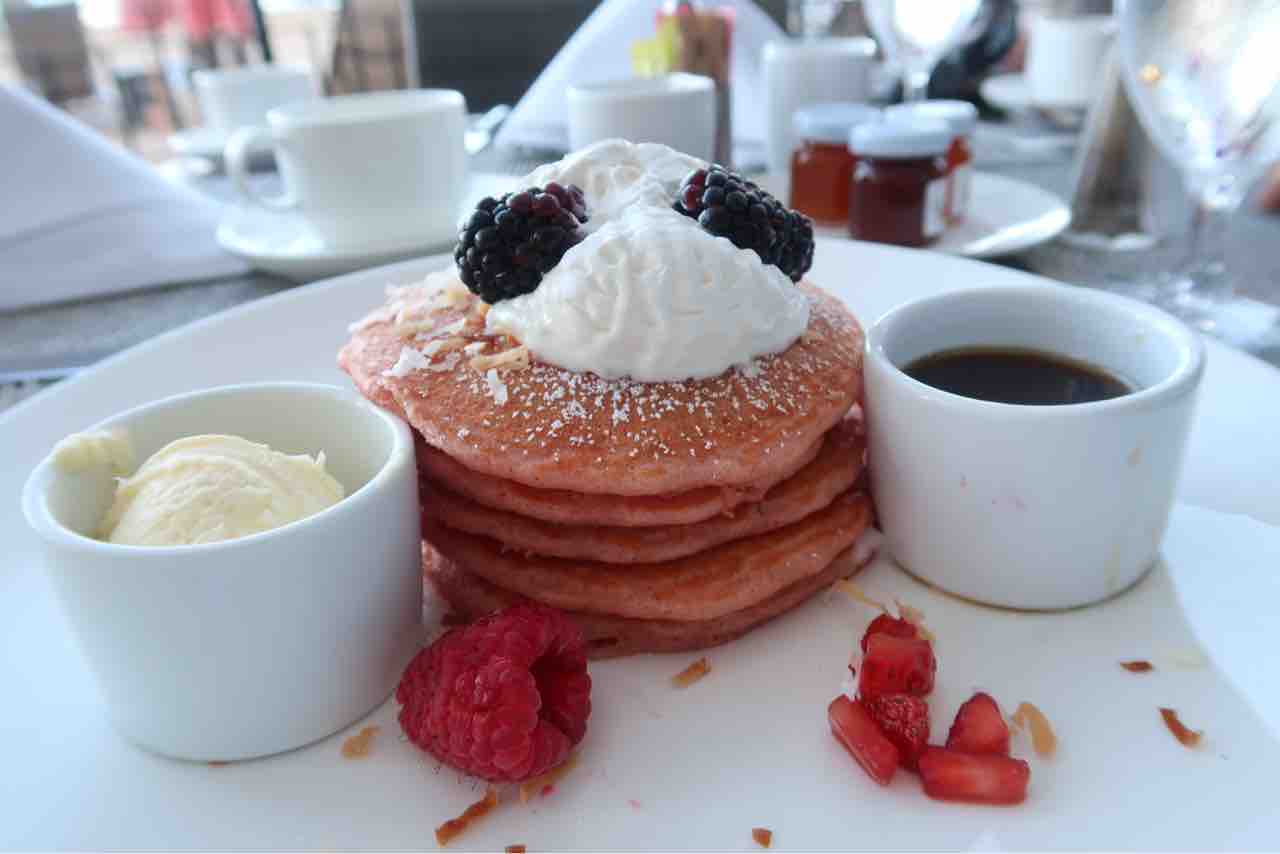 ここでは事前に調べていたピンクのパンケーキを注文しました。